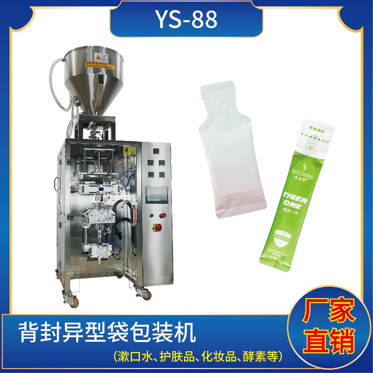 YS-65JL 異型袋包裝機(jī)特 點(diǎn) 1、適用于食品、醫(yī)藥、化工、化妝品行業(yè)中液體、醬料等物品的計(jì)量包裝。2、可自動(dòng)完成制袋、計(jì)量、下料、封合、分切、計(jì)數(shù)、且可根據(jù)客戶要求配置打印批號等功能。3、觸摸屏操作,PLC 控制,驅(qū)動(dòng)步進(jìn)電機(jī)控制袋長,性能穩(wěn)定、調(diào)整方便、檢測準(zhǔn)確。智能式溫控儀,PID調(diào)節(jié),保證將溫度的誤差范圍…