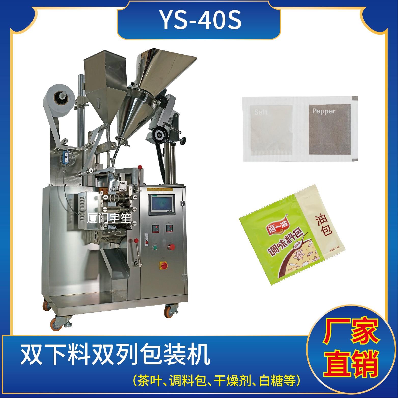 YS-40AK 三邊封顆粒自動包裝機特 點 1、適用于方便面行業(yè)湯包,干燥劑,沖劑,碎茶等小顆粒狀物品包裝。2、可自動完成制袋、計量、充填、封合、分切及計數等功能。3、包裝材料:茶葉濾紙、復合膜、無紡布。封口方式:三邊封技術參數 計量范圍:10 - 40 g(0.6 ~ 33 ml)制袋尺寸:長 ( L ) : 40 - 110 mm …