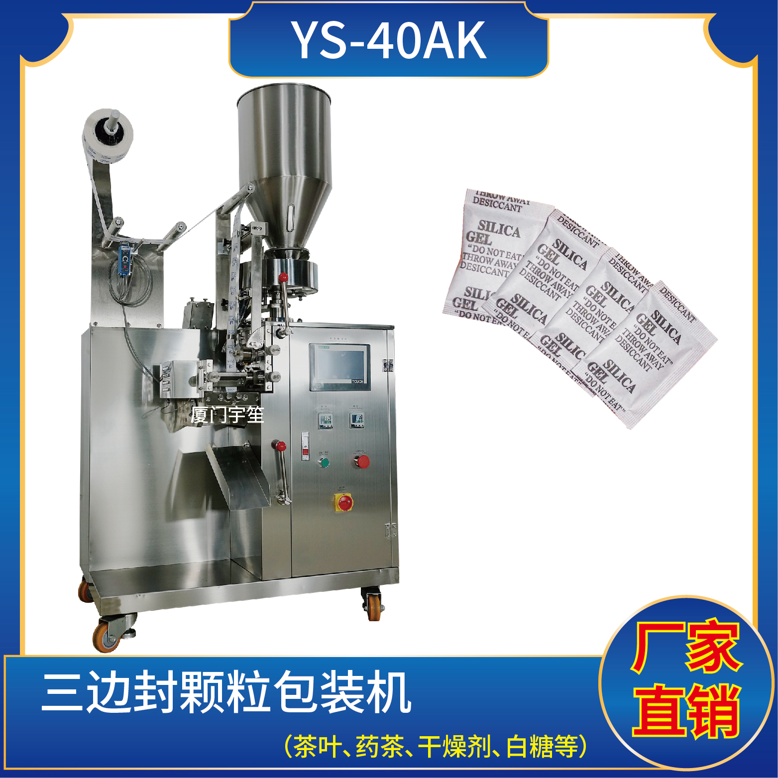適用于方便面行業(yè)湯包,干燥劑,沖劑,碎茶等小顆粒狀物品包裝。
