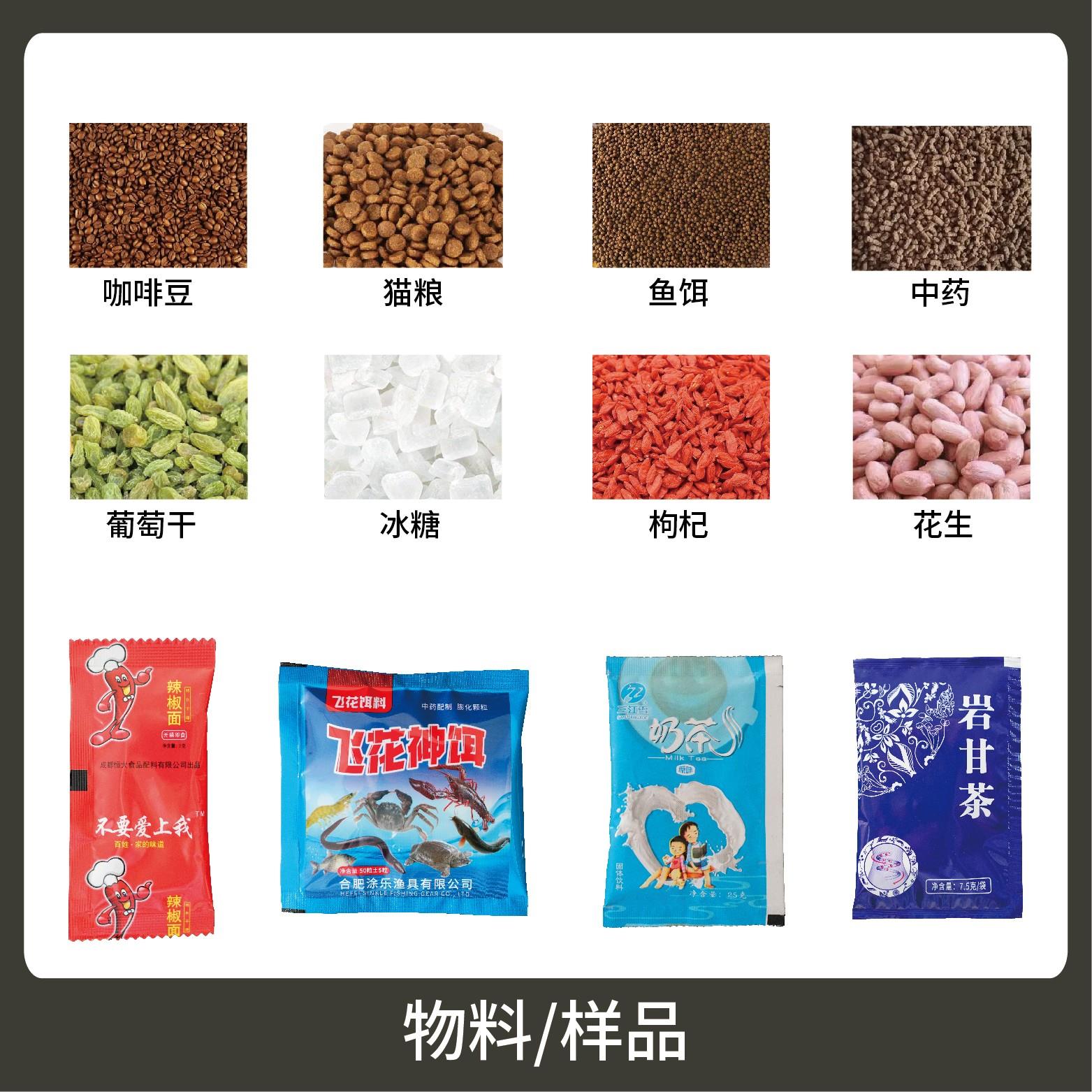 適用于各行業(yè)中堅果、炒貨、干果、餌料、中藥等顆粒狀物品的計量包裝。